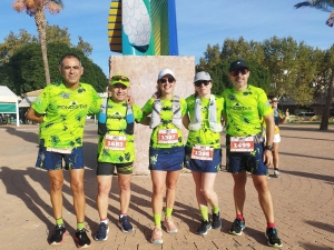 Amparo, Jose Federico, Fini, Roberto y Francisco participaban en la prueba Maratón 42k en la modalidad de equipos, por ello debían de llegar juntos a meta, con el tiempo que obtuvieron les valía para conseguir el 5º puesto en la categoría de equipos.