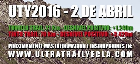 Ya hemos publicado el reglamento y los datos técnicos de Tomillo Trail 2016 y Tinto Trail 2016. Ambas pruebas transcurrirán el día 2-abril-2016, la apertura de inscripciones se realizará el 11-enero-2016 y se cerrarán el 20-marzo-2016.